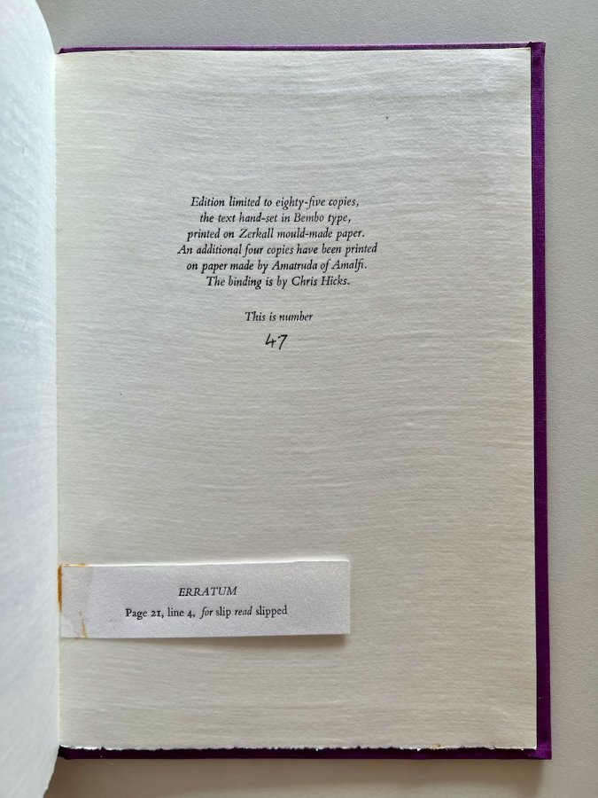 (Book) Edition of 85 copies. 83 pages. ~25.0 cm (height).