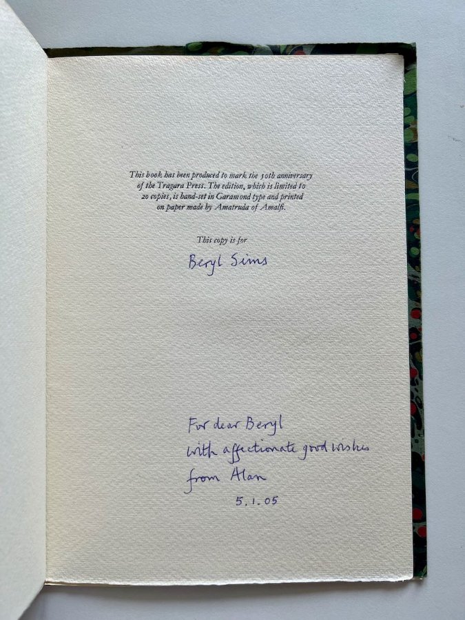 A collection of poems, chosen by Alan and Jennie Anderson, privately printed to celebrate the 50th anniversary of the Tragara Press.
