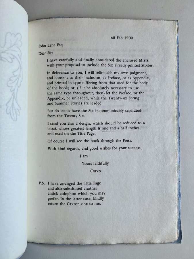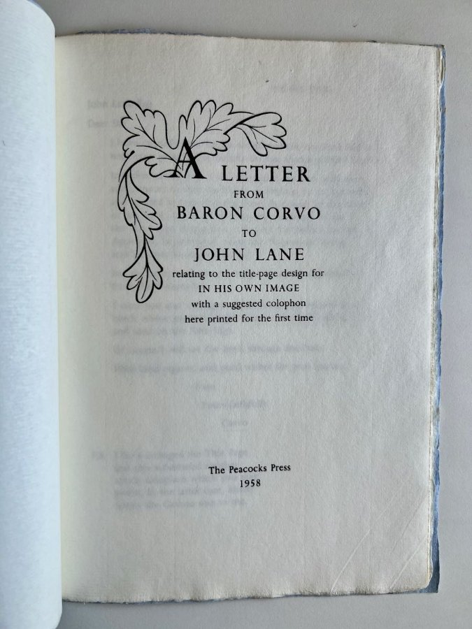 - Cecil Woolf, "Baron Corvo, A Bibliography of Frederick Rolfe", 2nd ed., 1972, A15, p.71.