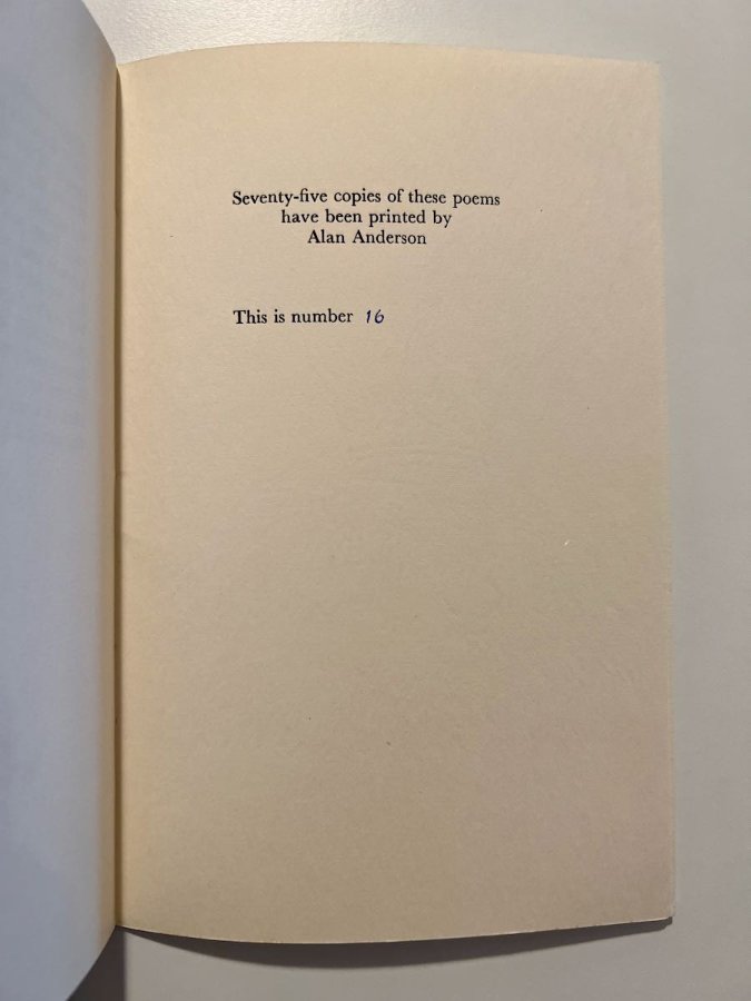 (Book) Edition of 75 copies. 11 pages. ~20.5 cm (height).
