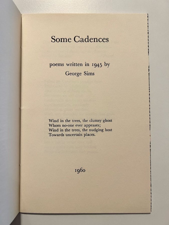 Printed on cream Abbey Mills paper, and sewn in Curwen Press patterned wrappers with printed paper label.