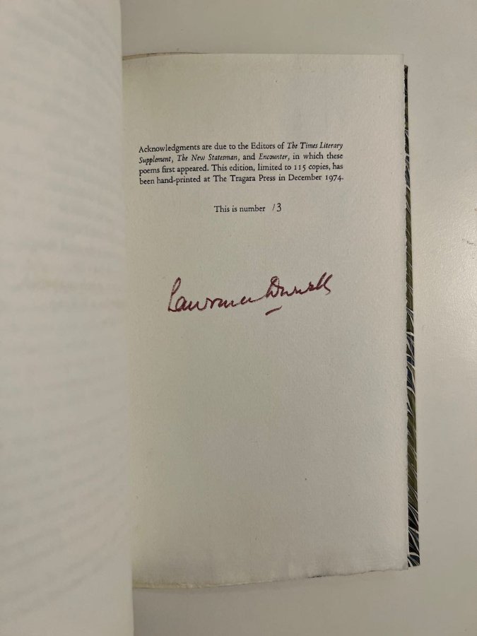 Publication: 1974 [Edinburgh]. The Tragara Press