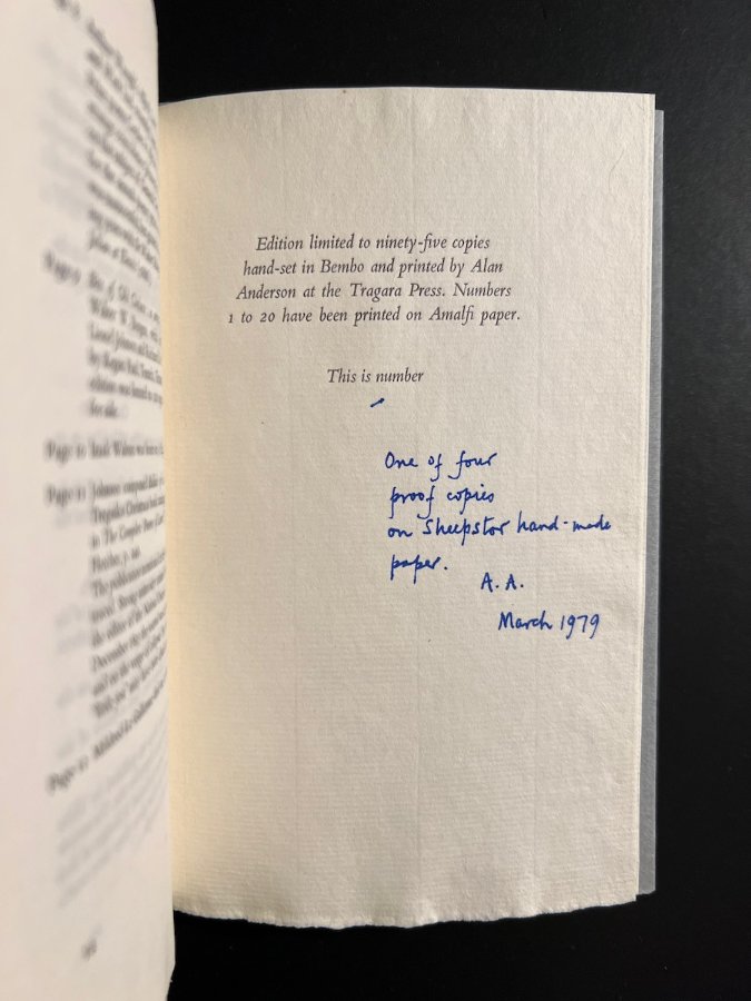 Publication: 1979 [Edinburgh]. The Tragara Press