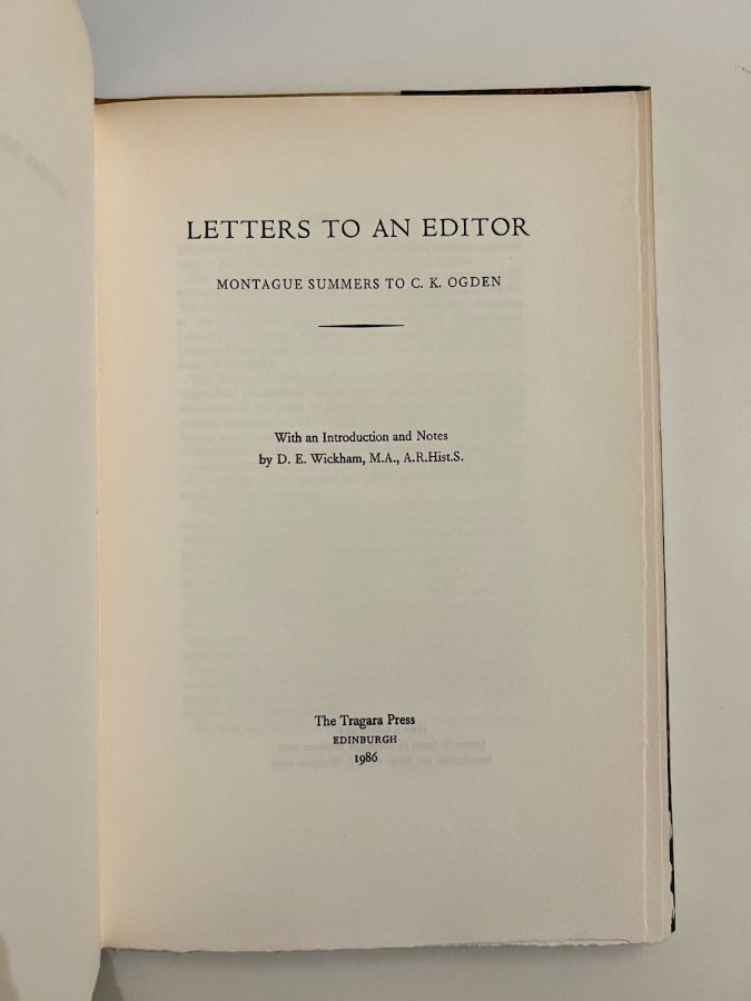 Montague Summers (Author of letters), D.E. Wickham (Introduction and notes)