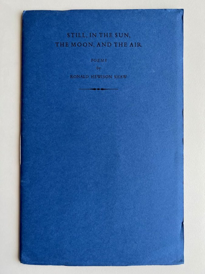 Printed on Saunders paper, and sewn in blue wrappers, lettered on the front.