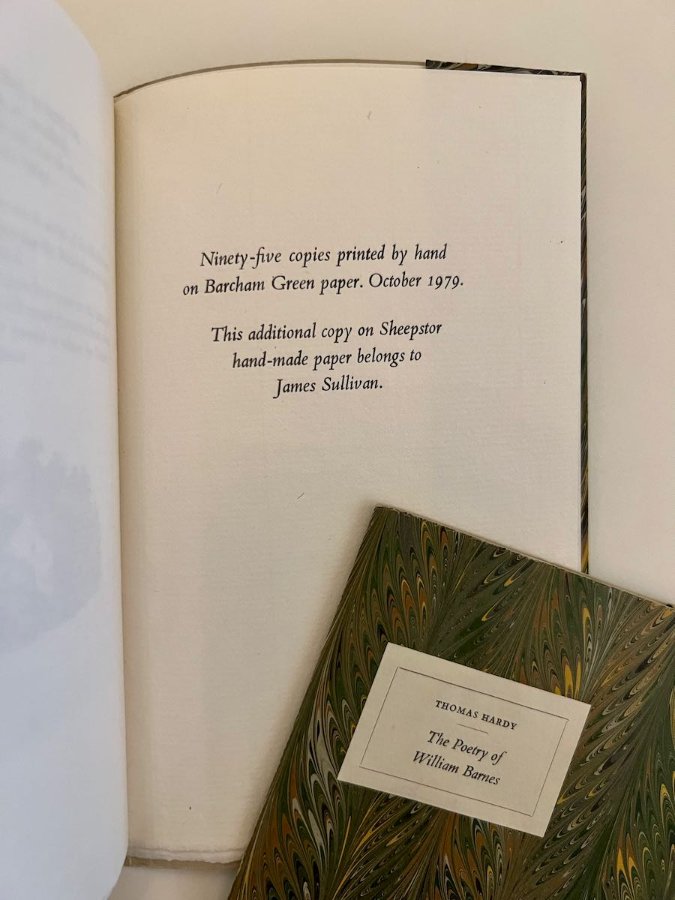 Printed on Sheepstor paper, and sewn in marbled wrappers with printed paper label.