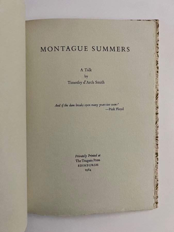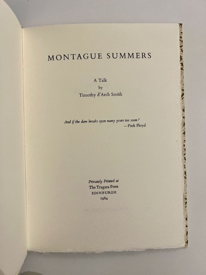 Publication: 1984 [Edinburgh]. The Tragara Press