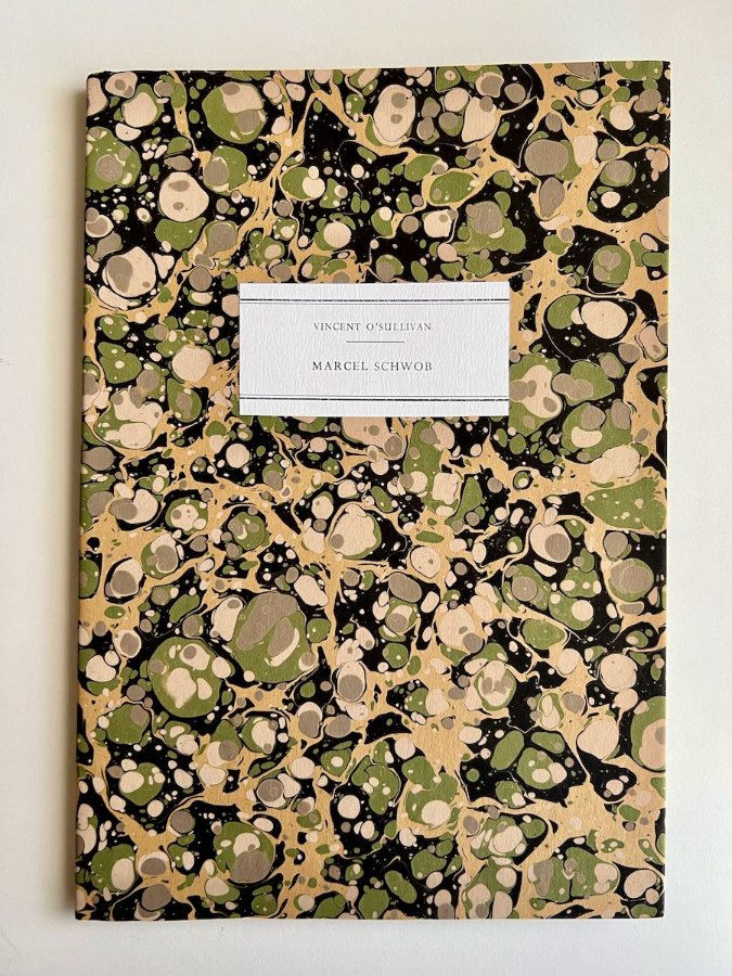 Printed on Zerkall paper, and sewn in marbled Cockerell & Sons marbled wrappers with printed paper label.